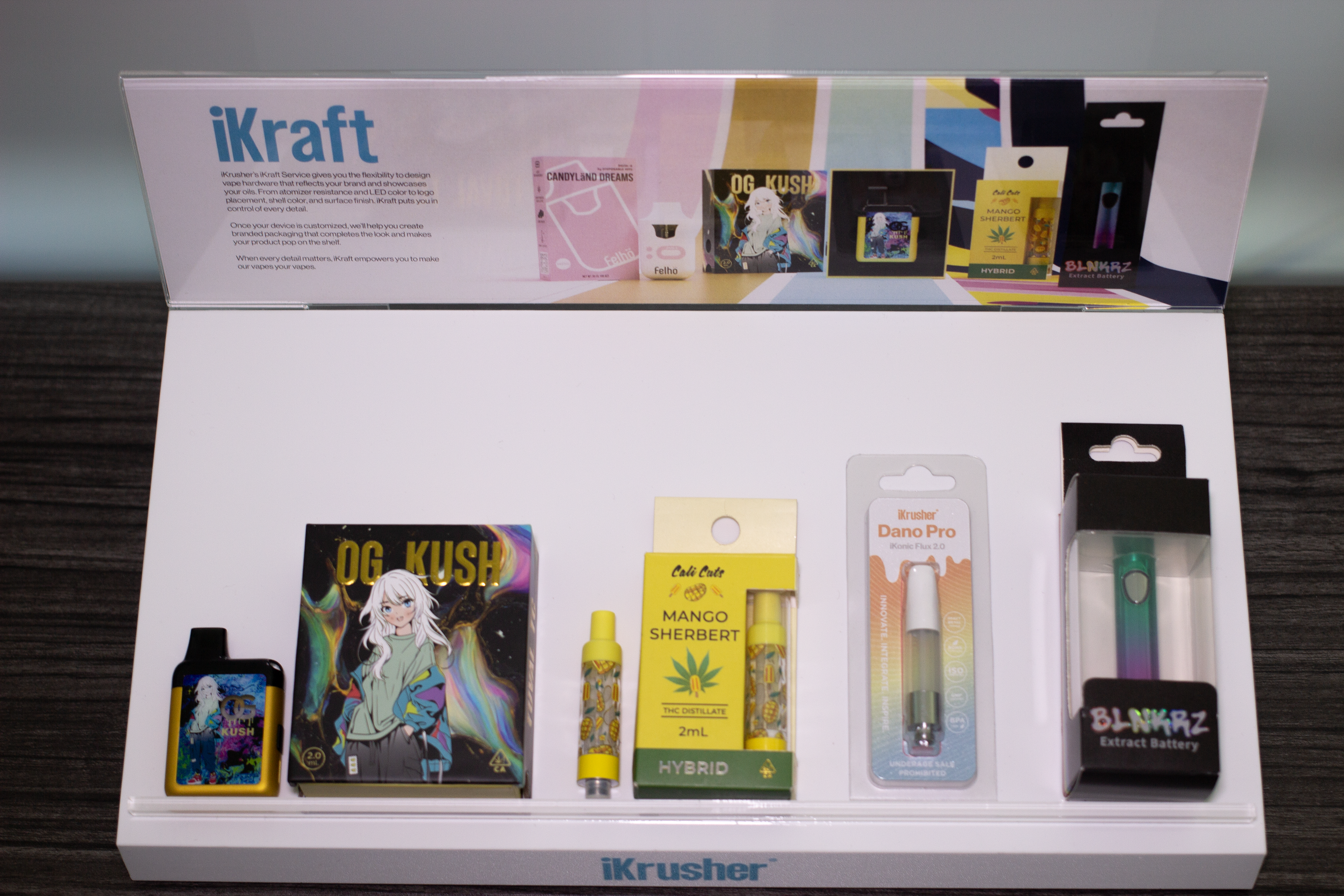 In 2025, I helped the Marketing Team at iKrusher plan, budget and design new display shelving for iKrusher's vape hardware products. Throughout the year, our team coordinated with our Chinese teams to source and build out the new shelving designs for the iKrusher brand, going for a clean and simplified aesthetic common in the technology industries with our signature light blue branding and logo.